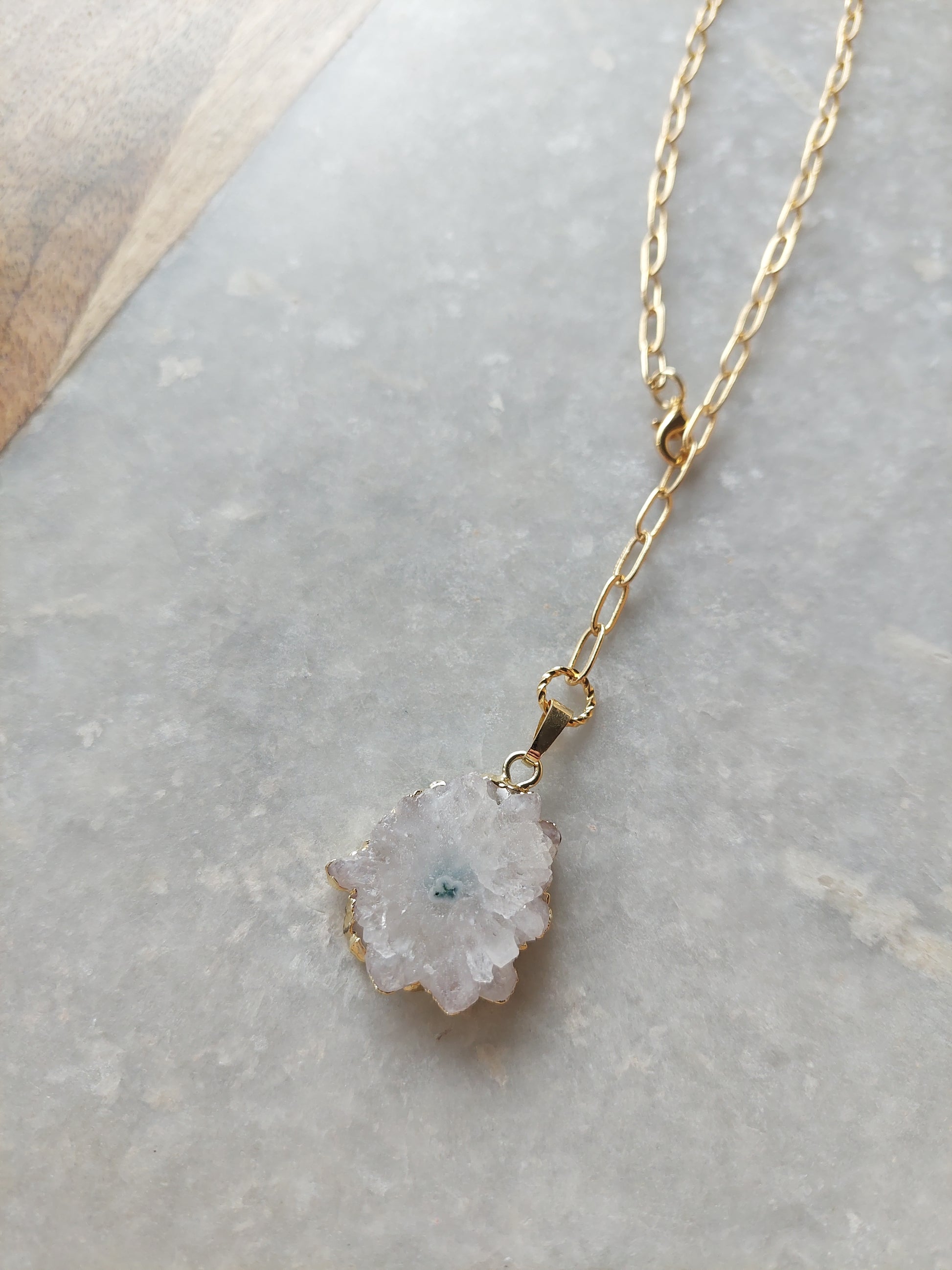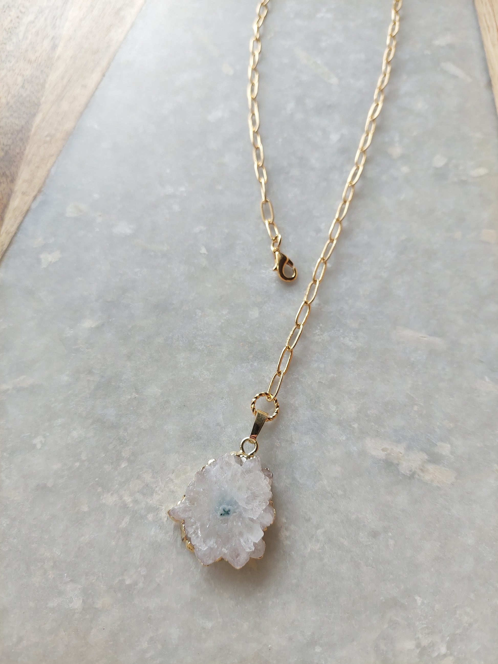Natural Quartz Pendant; Gold-plated Lobster Claw