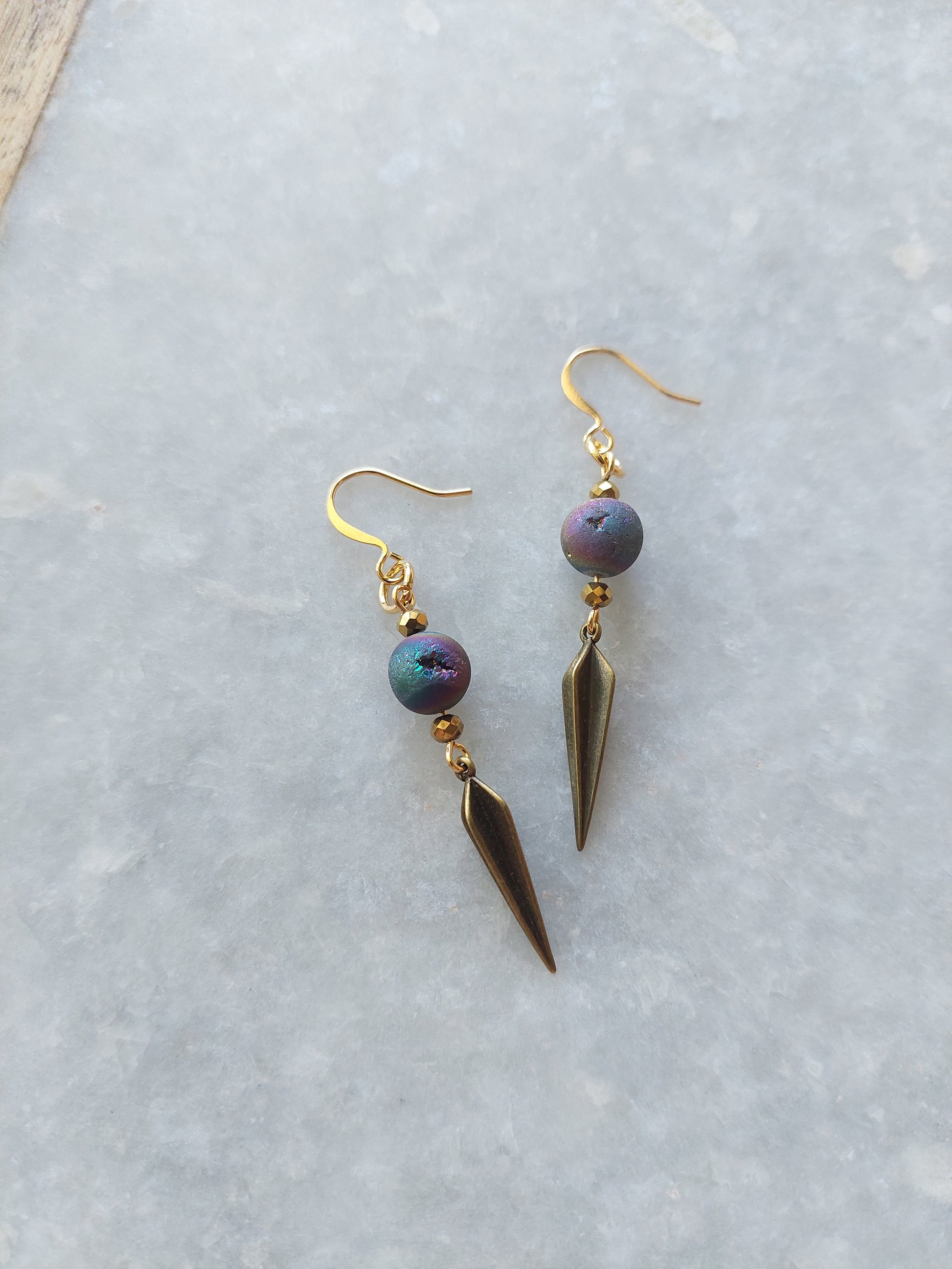 These earrings are made with imitation druzy beads. I love the galaxy coloring!