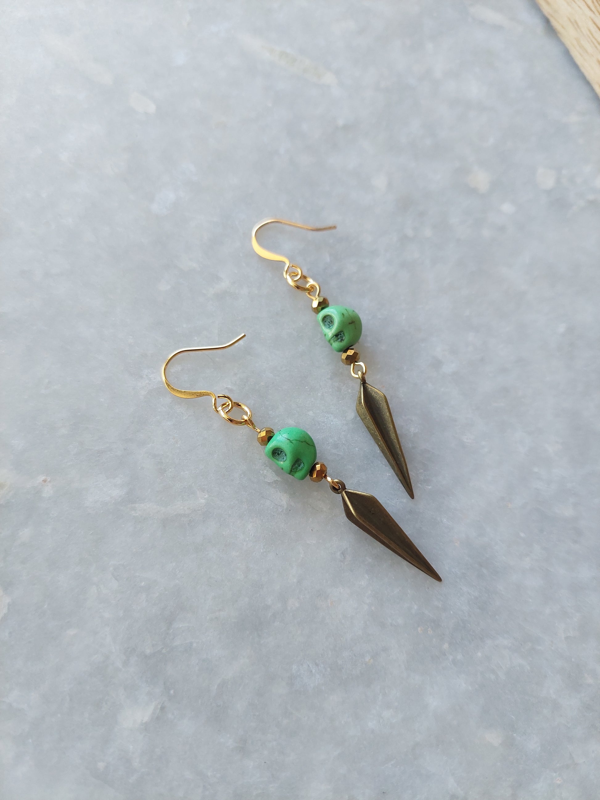 Howlite Skull Earrings - (green variation is cast-stone)